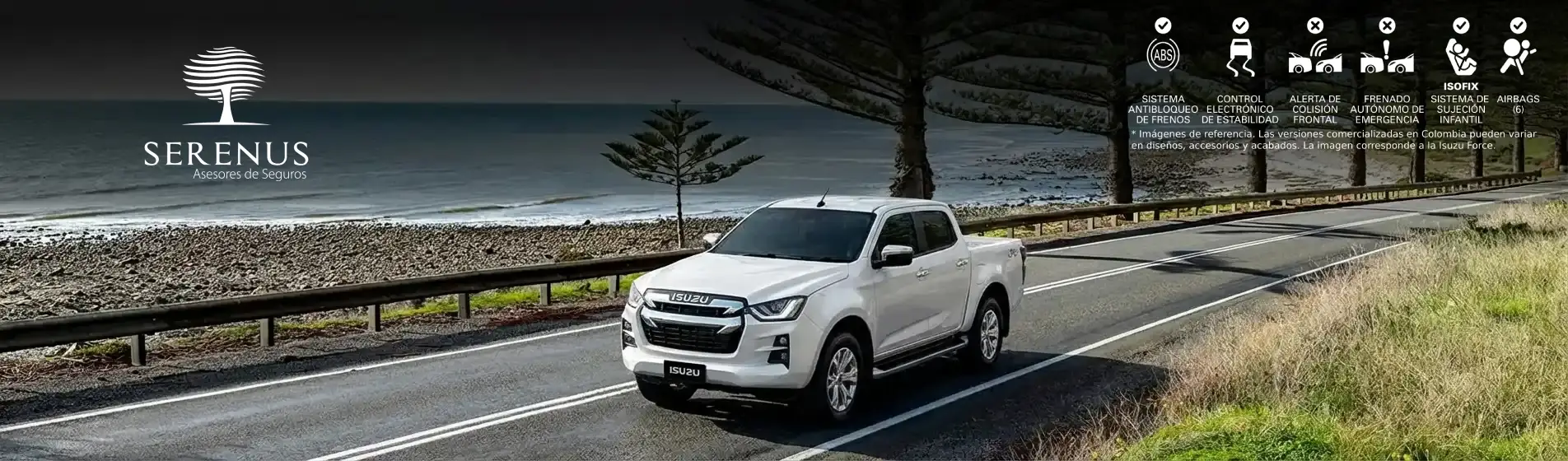 Elegir un Isuzu es confiar en un vehículo fuerte y confiable. En alianza con Serenus Asesores de Seguros, te ofrecemos pólizas que protegen tu Isuzu y te dan tranquilidad en cada recorrido.